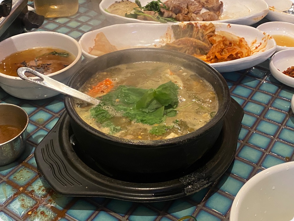 바로 된장찌개 한 스푼 떠먹는 순간 느끼함이 바로 사라집니다.